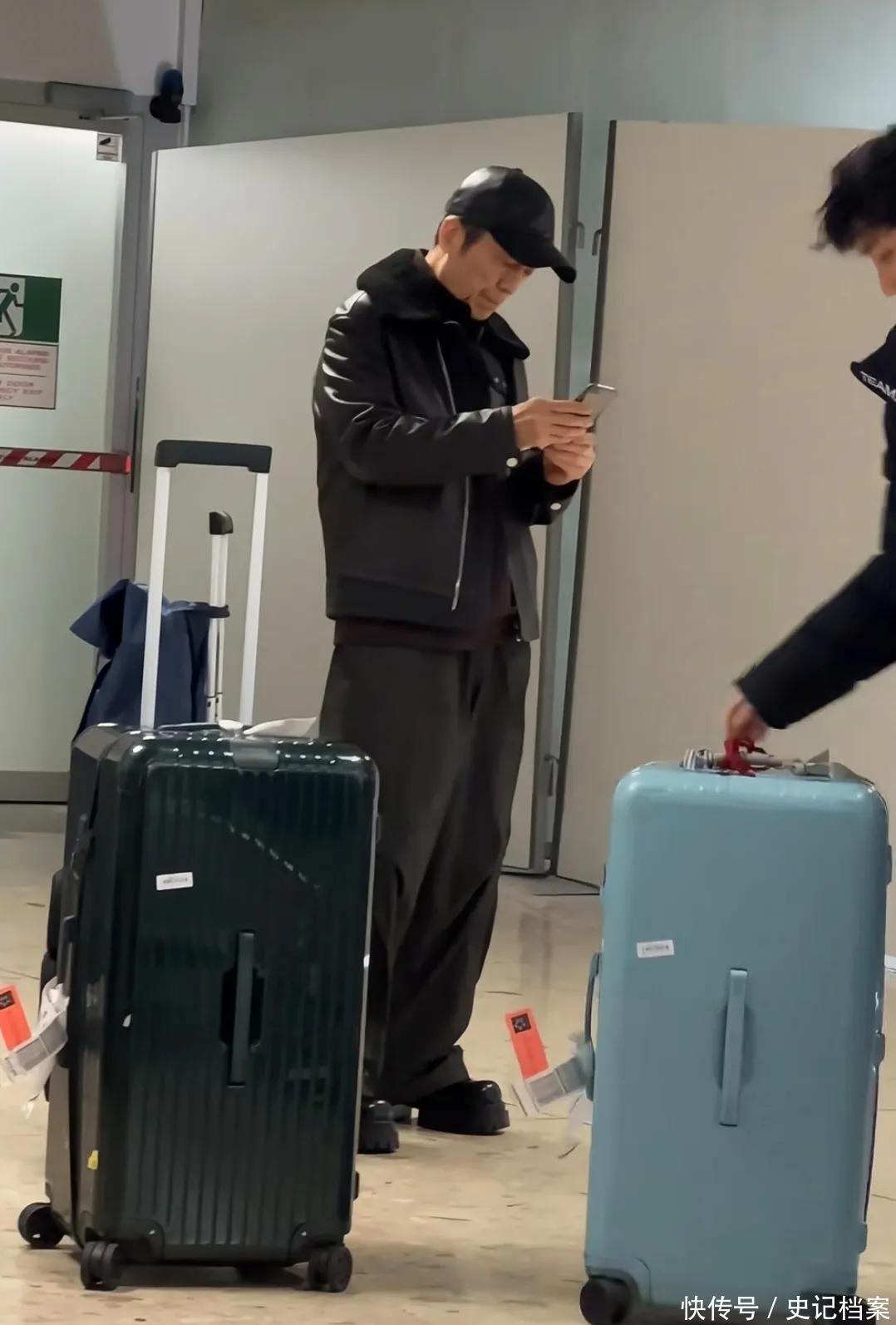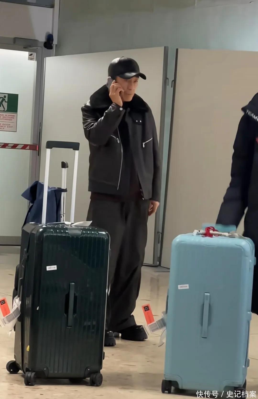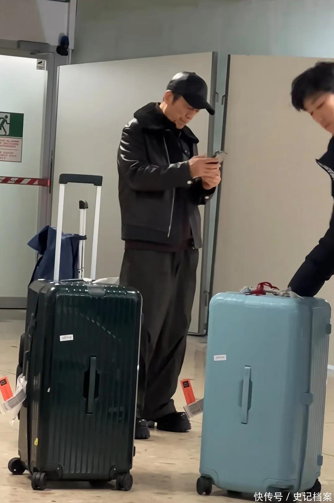 在他身旁有一个大大的行李箱,只见他翻看手机,然后提起来放在耳边,不知谈是听语音,已经打电话关系东谈主呢?