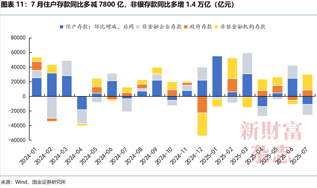 咱们以为,A股下一阶段的一个进军资金面支抓在于居民入款和接待搬家的潜在空间。7月金融数据显现,居民入款环比减少1.1万亿元,较客岁同期多减7800亿元;而非银机构入款加多2.1万亿元,较客岁同期多增1.4万亿元。入款利率下行重叠股市获利效应增强,可能正在刺激居民部门风险偏好增强,导致入款搬家行为。