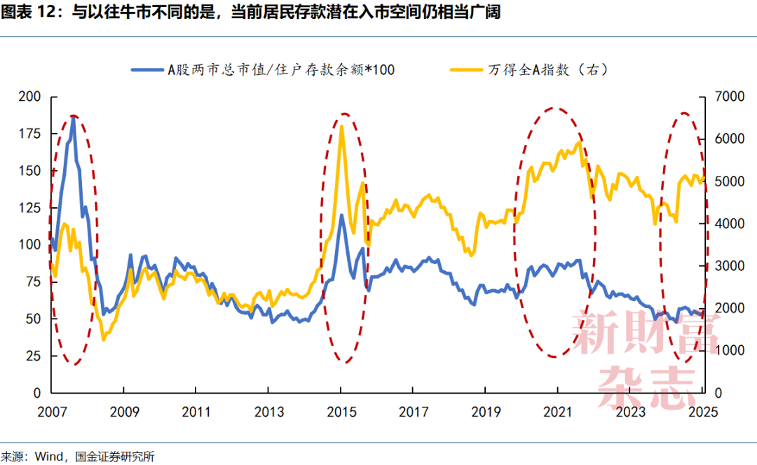 面前,居民入款占A股总市值的比重仍在历史低位,上升起间浩繁,且房地产商场配景已不同于前几轮股票牛市,表面上,居民入款去往股市的旅途更顺畅,增量资金空间矫健。但入款搬家仅仅扫尾,其泉源来自于A股相对获利效应的回升,或基于估值竖立,或基于事迹改善。