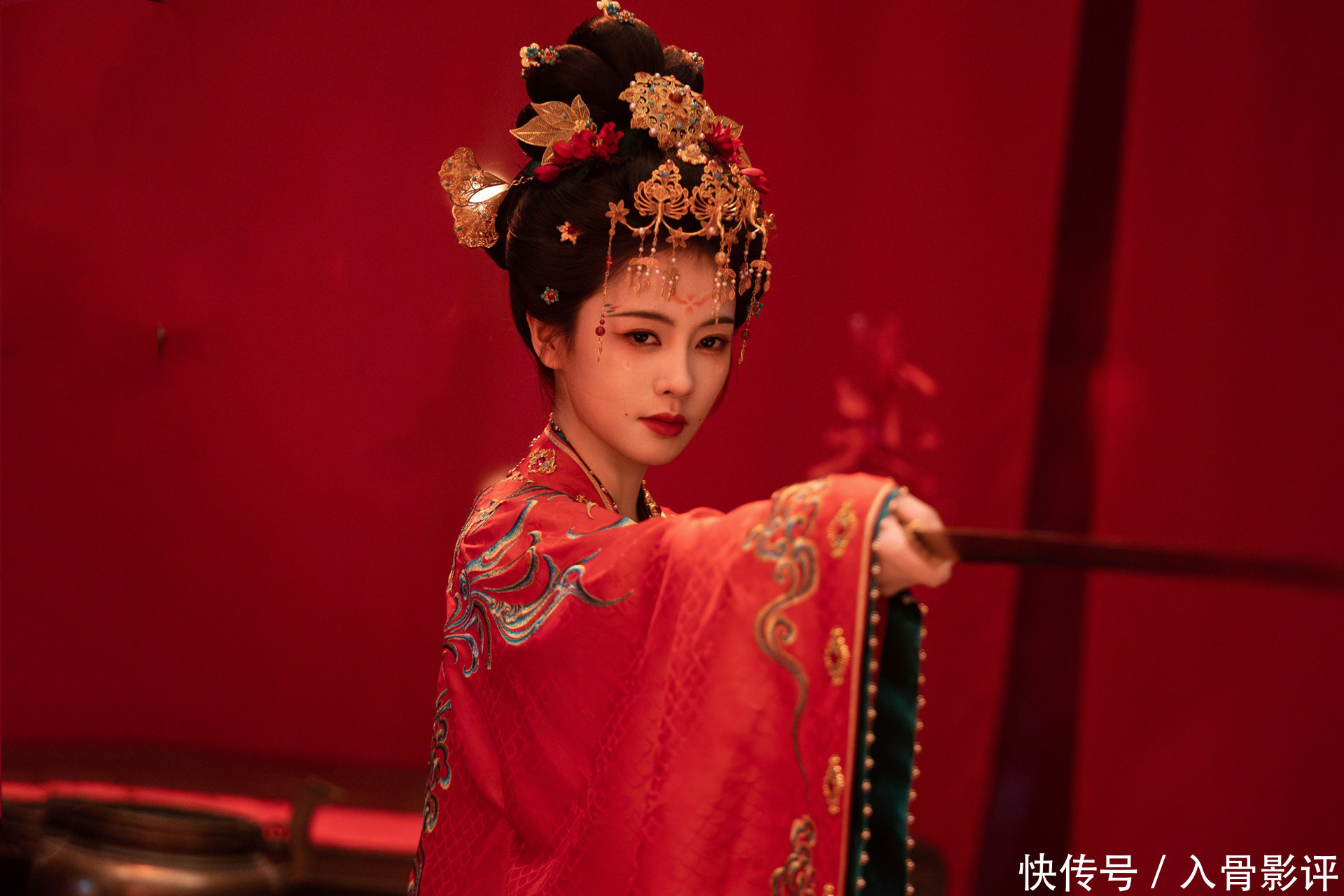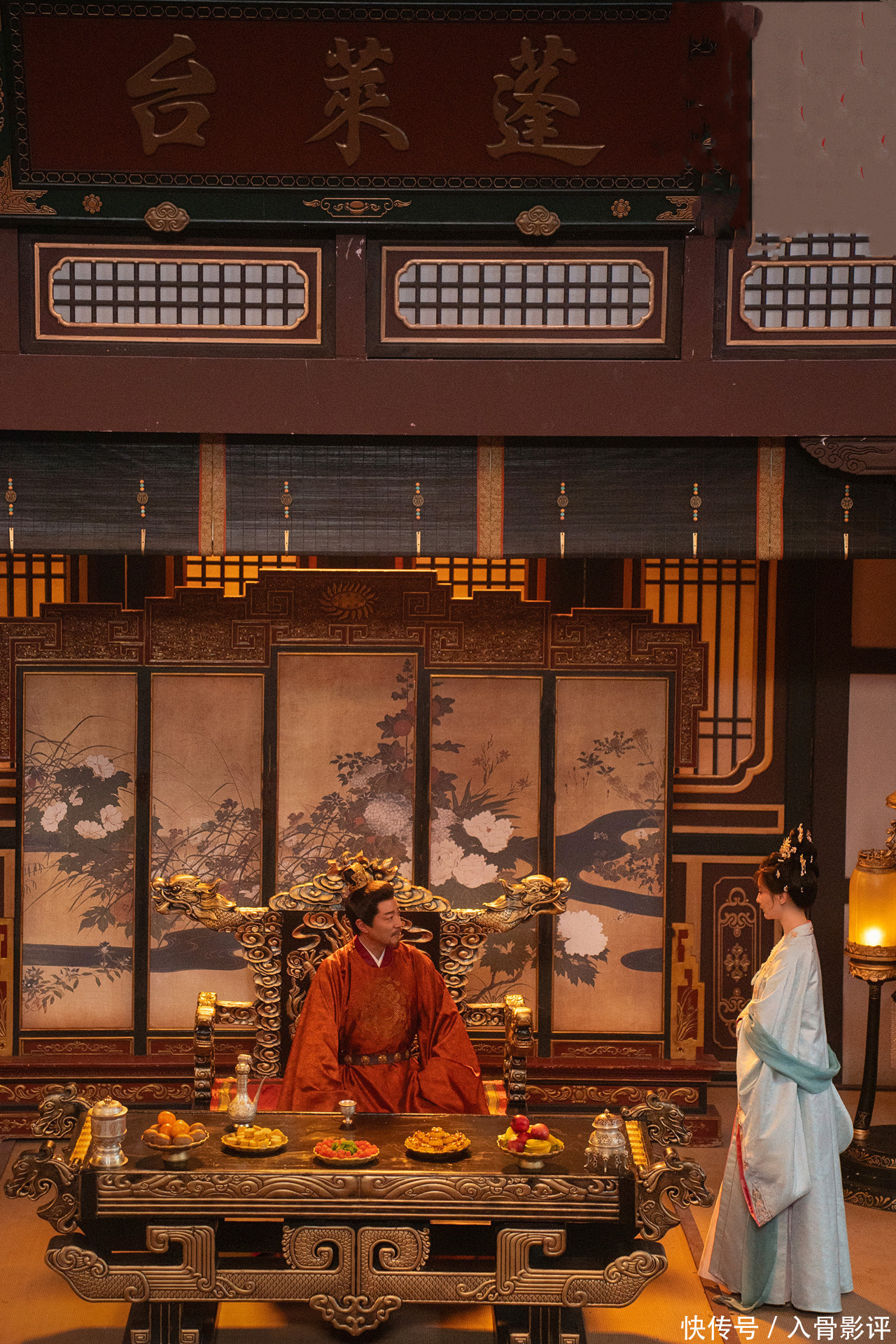 李佩仪的圆领袍复刻唐代壁画形制,妃嫔的襦裙斑纹源自正仓院织物残片,再加上烛火灯笼打造的光影氛围,轧筝,筚篥等仿唐乐器的配乐,每一帧王人像盛唐壁纸,千里浸式的唐风体验获胜拉满,好不淆乱一个大唐盛世。