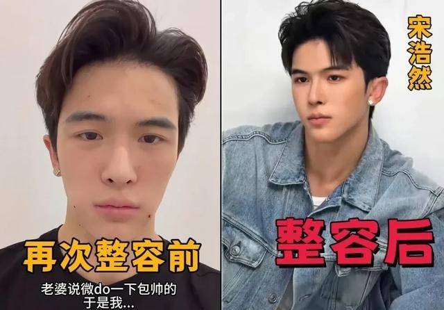 其实宋浩然折腾脸也不是一天两天了。十二三岁就驱动动刀,六年作念了七次手术,从眼鼻微调全部整到精灵耳、含笑唇,连脚后跟王人打玻尿酸增高。最讥笑的是,他和韩安冉成婚那会儿明明是颜值巅峰,流露当然的格式圈了不少粉,偏巧非要跟风网红审好意思,把我方整成了"复制粘贴脸"。