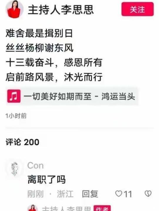两年前她短暂在我方的酬酢账号上发文,实质疑似离开央视。