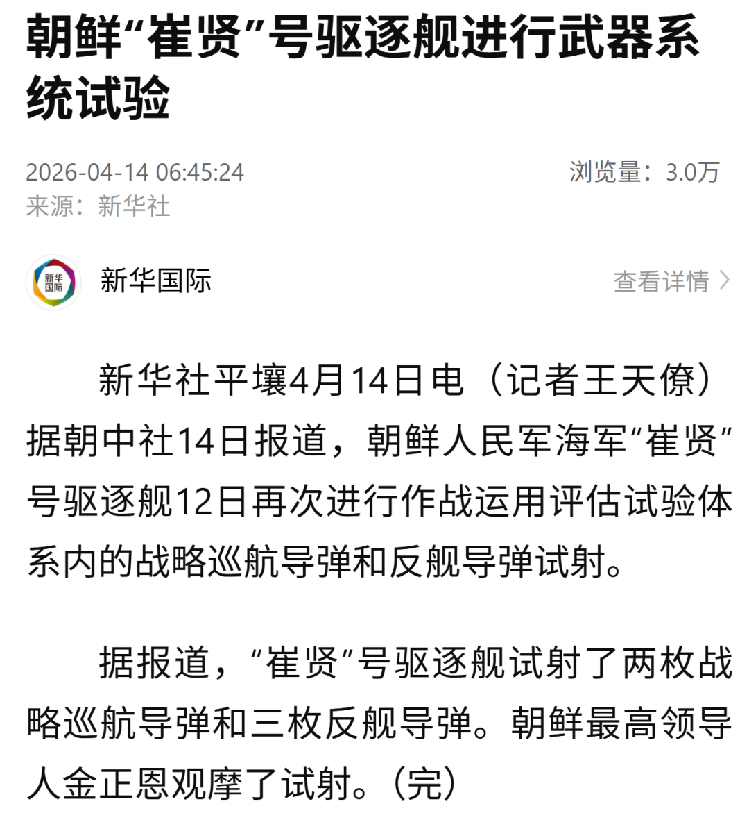 据报说念,“崔贤”号驱散舰试射了两枚策略巡航导弹和三枚反舰导弹。朝鲜最高教导东说念主金正恩不雅摩了试射。