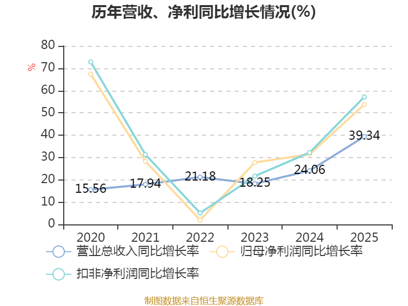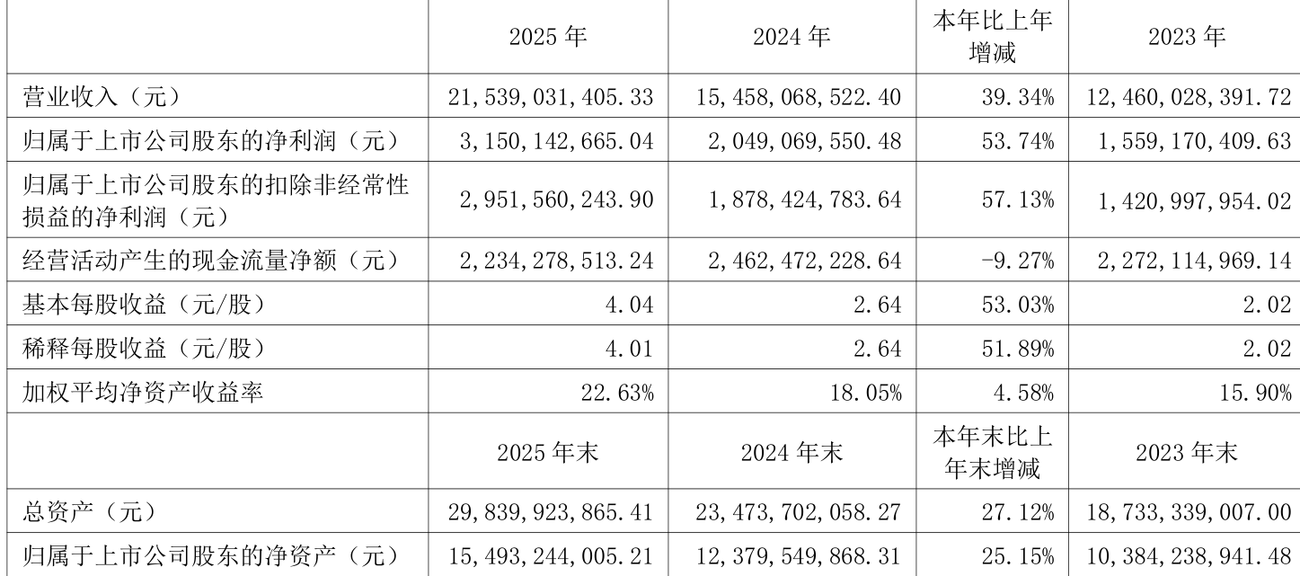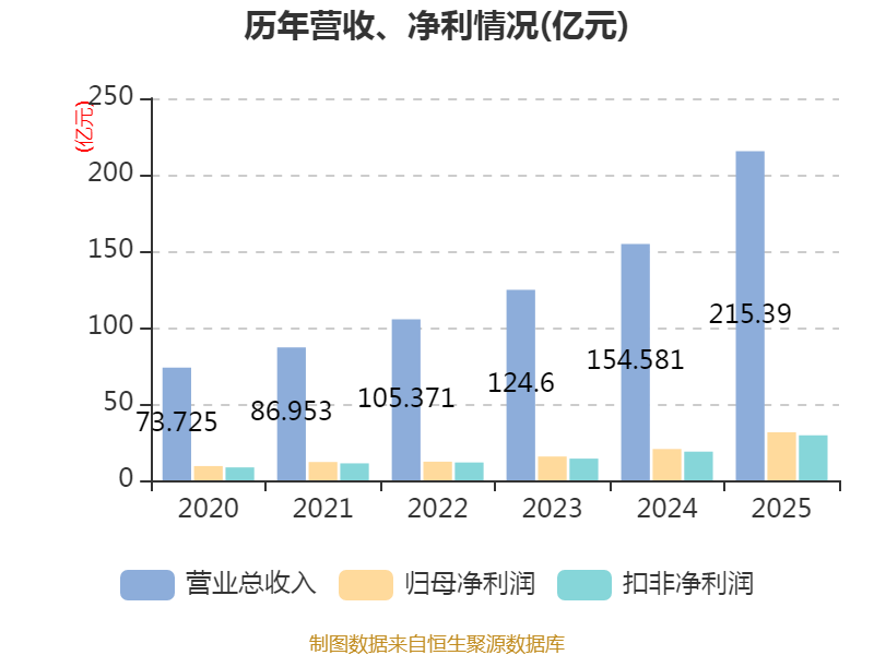 中证智能财讯念念源电气(002028)4月18日露馅2025年年度论述。2025年,公司兑现贸易总收入215.39亿元,同比增长39.34%;归母净利润31.5亿元,同比增长53.74%;扣非净利润29.52亿元,同比增长57.13%;计算动作产生的现款流量净额为22.34亿元,同比下落9.27%;论述期内,念念源电气基本每股收益为4.04元,加权平均净钞票收益率为22.63%。公司2025年度分拨预案为:拟向整体鼓动每10股派现7元(含税)。