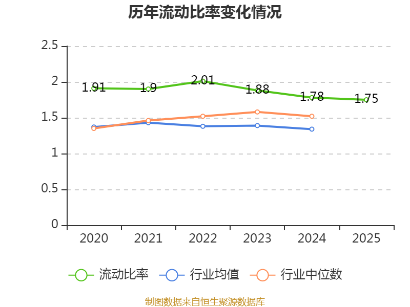 2025年,公司流动比率为1.75,速动比率为1.45。