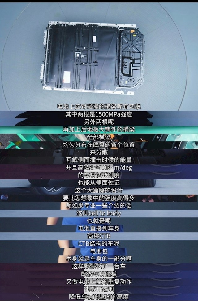 此外,电板上应答的碰撞的横梁有四根,其中两根是1500MPa强度,另外两根再加上后地板大铸件的横梁,均匀散布在底盘的哥哥位置来分袂,观念侧面撞击时间的能量等(车身扭转刚度达到了47610N·m/deg)。